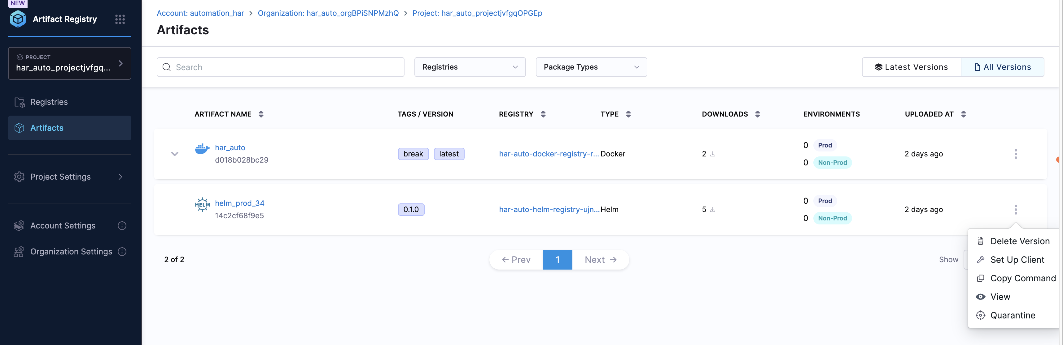 For a more in depth guide on how to pull and push docker artifacts, go to the Quickstart Guide
