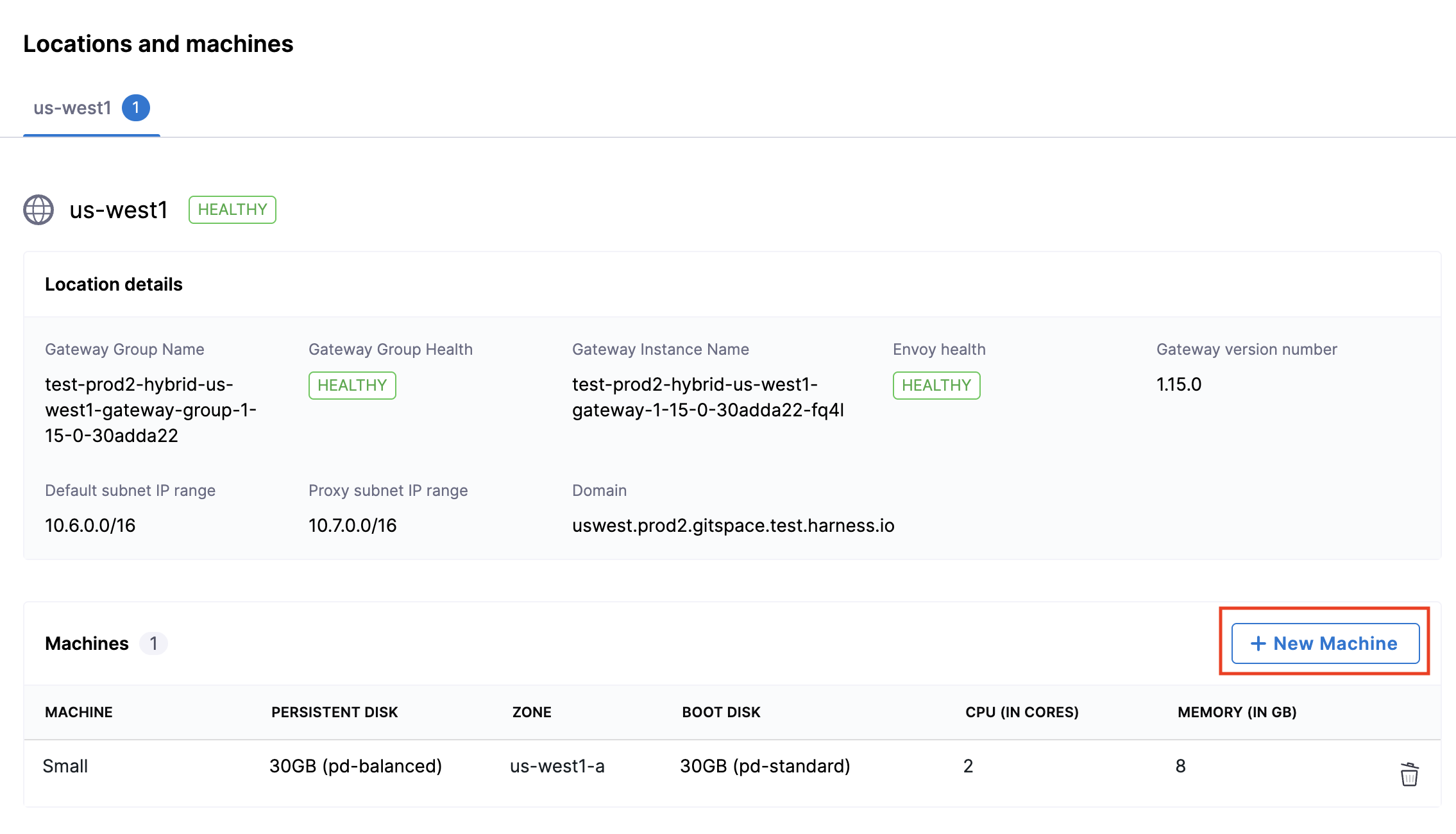 2. Verify that the Gateway Group Health status for the added region is marked as Healthy before creating any Self Hosted Gitspaces. Learn more in the Manage Gitspace Infrastructure guide.