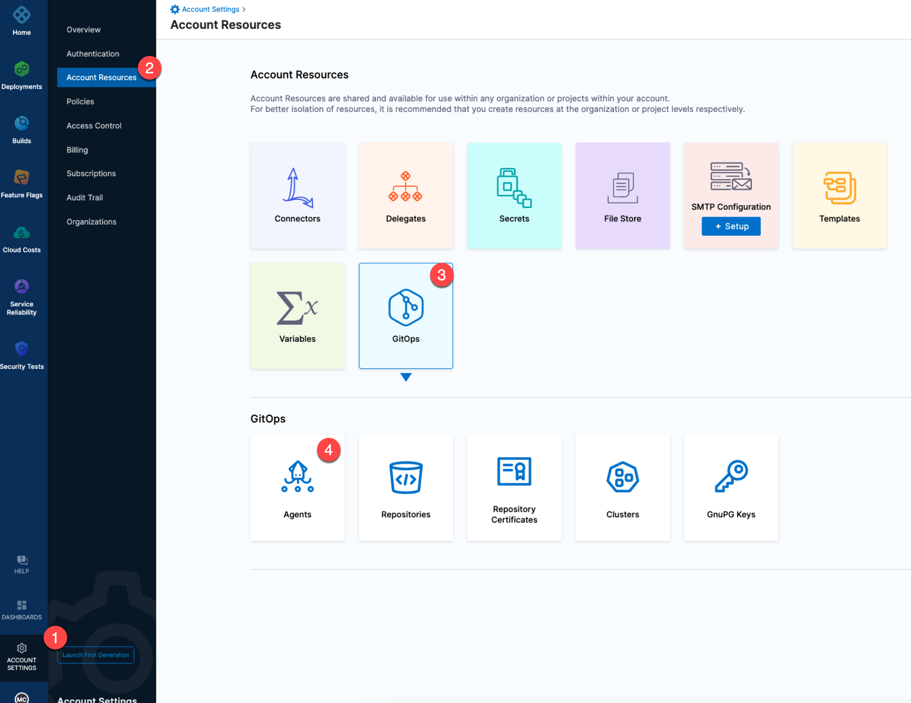 The following steps are common to all three entities (clusters, repositories, and applications) when you create them in Harness. We will demonstrate this with GitOps clusters: