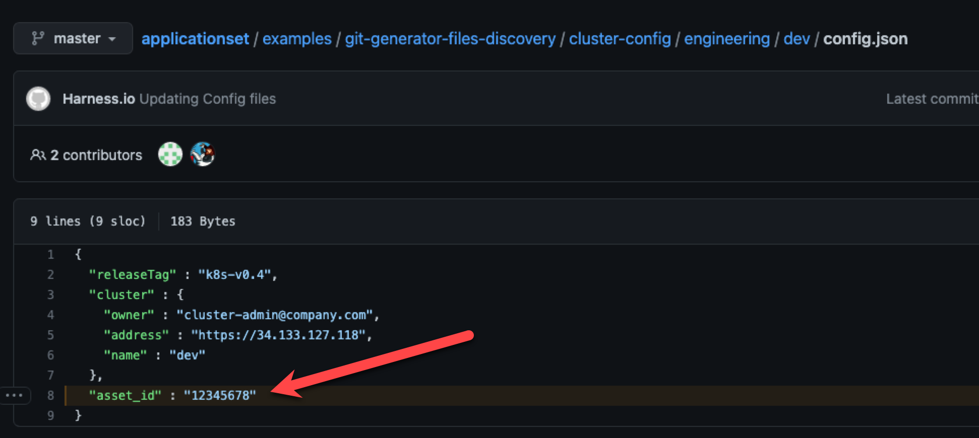 config.jsonfile for the dev environment has been updated with the new asset_id value: