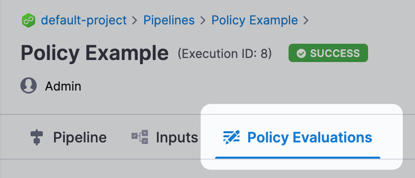 On the Pipeline deployment summary (Execution History), click Policy Evaluations.
