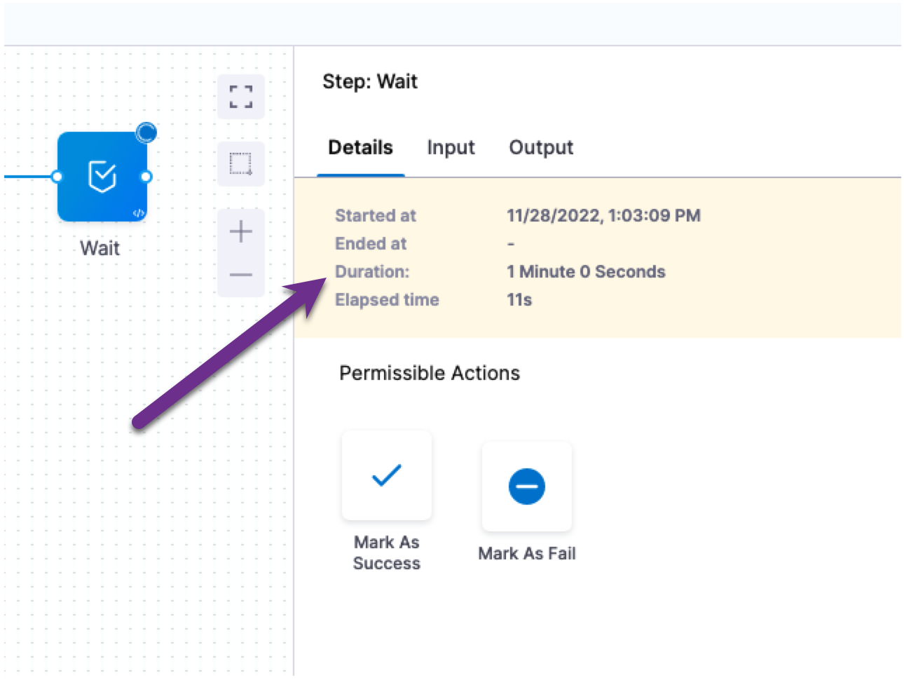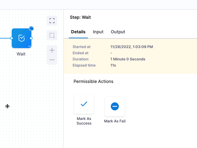When the Wait step is running, it provides Mark as Success and Mark as Failed options. Mark as Success ends the wait period and proceeds with the execution. Mark as Failed initiates the Failure Strategy for the step or stage, if any, or simply fails the execution.