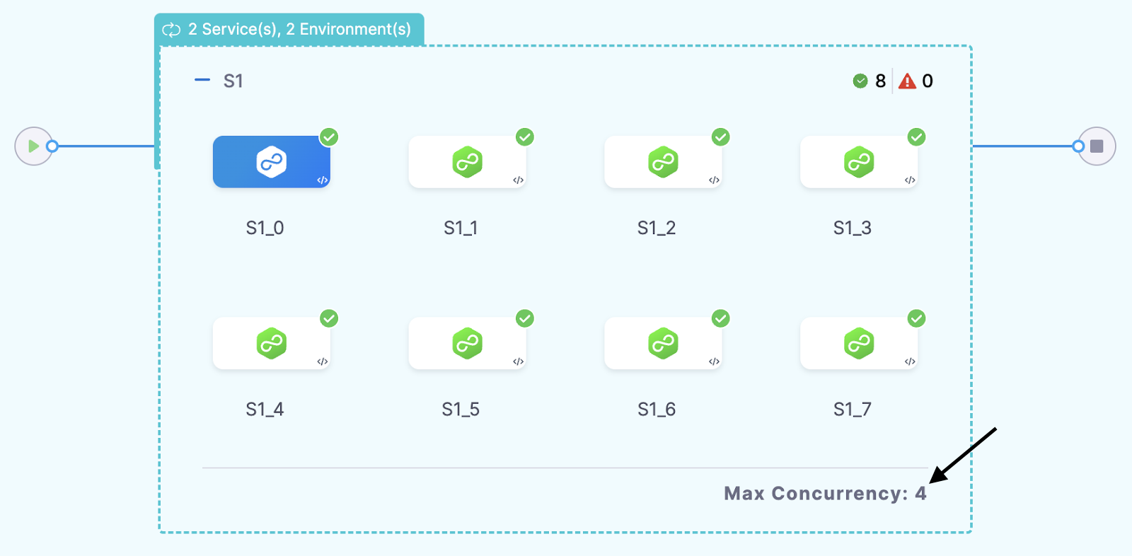 When you view a multi service or environment deployment, you can see Max Concurrency: