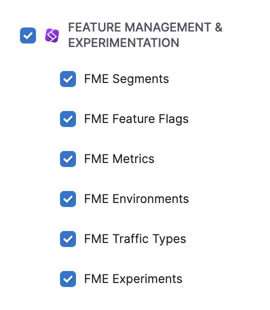 - Project Scope: Contains resources specific to a project, such as FME feature flags, segments, metrics, environments, and traffic types. Project-level resources are not shared with other projects or organizations.