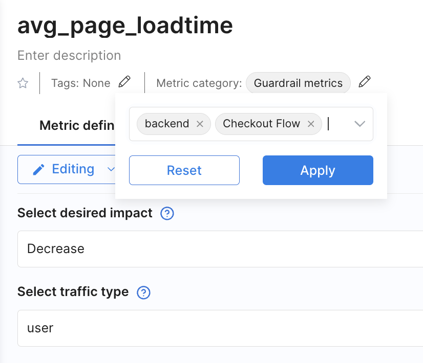 Use tags to narrow feature flags, segments, metrics, or experiments to only the objects that match one or more tags.
