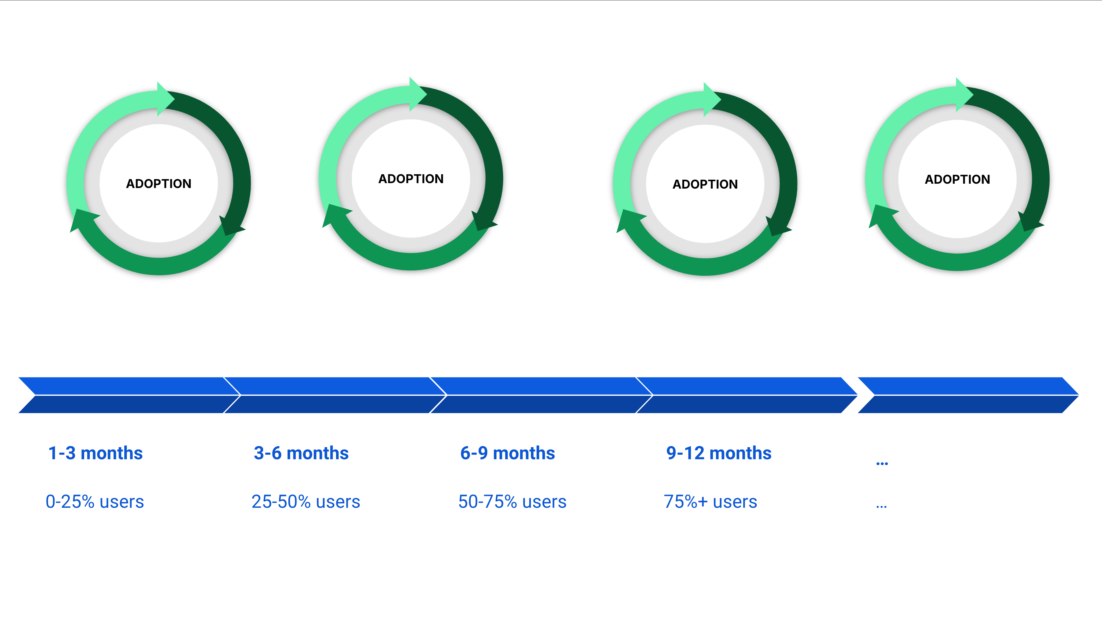 • 6–9 Months: Achieve 75% adoption through iterative refinements and team-wide rollouts.