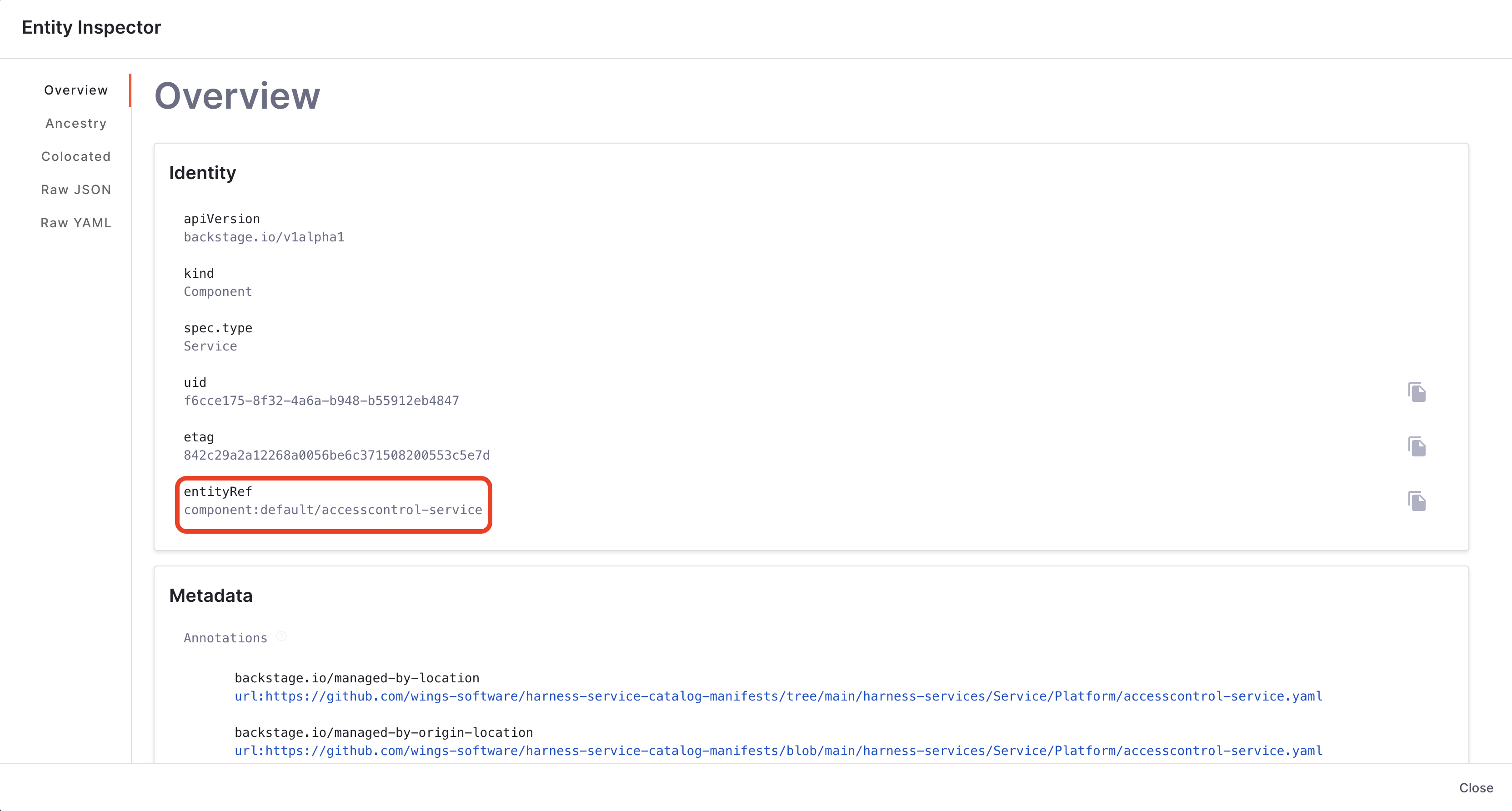 ENTITY_REF needs to be replaced with the entity path, for e.g., component:default/idp-service (kind:namespace/name format)
