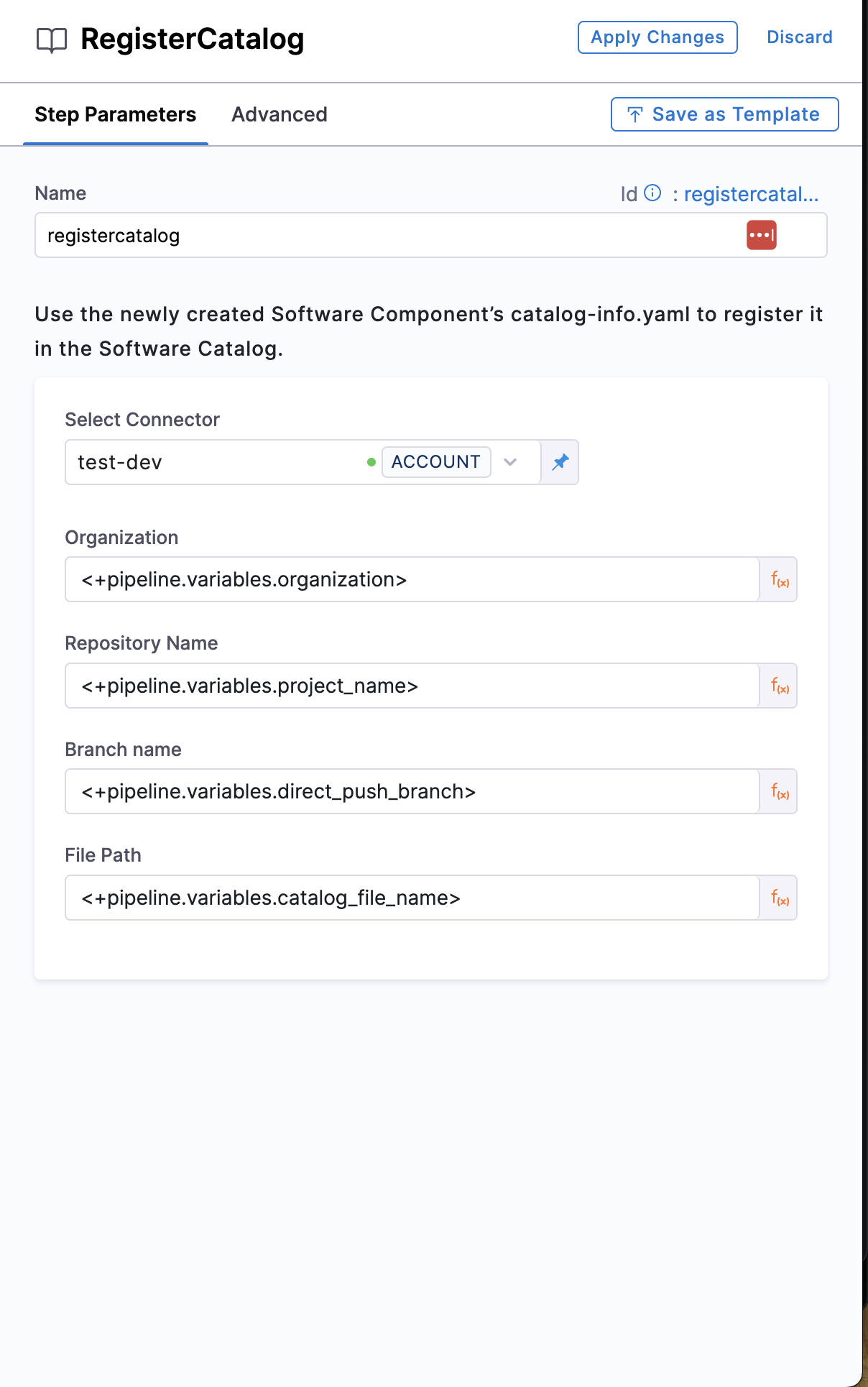 cookieCutter: Used to take inputs for the cookiecutter template.createRepo: Used to create the repository in your git providerdirectPush: Used to push the service/application created using Cookiecutter step along with the catalog-info.yaml in the repo you created in previous step.registerCatalog: Used to register the software component created in the Harness IDP Catalog.slackNotify: Used to notify individual developers once the pipeline is executed successfully and your Software component is registered successfully in your Software Catalog.createResource: Used to create Harness entities like projects, users, connectors, pipelines, secrets, etc.updateCatalogProperty: Used to update the catalog metadata for your entitiescreateOrganisationcreateProjectcreateCatalog