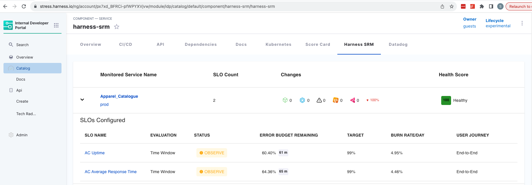 To configure the plugin for a service in the software catalog, set a harness.io/services annotation in its catalog-info.yaml definition file: