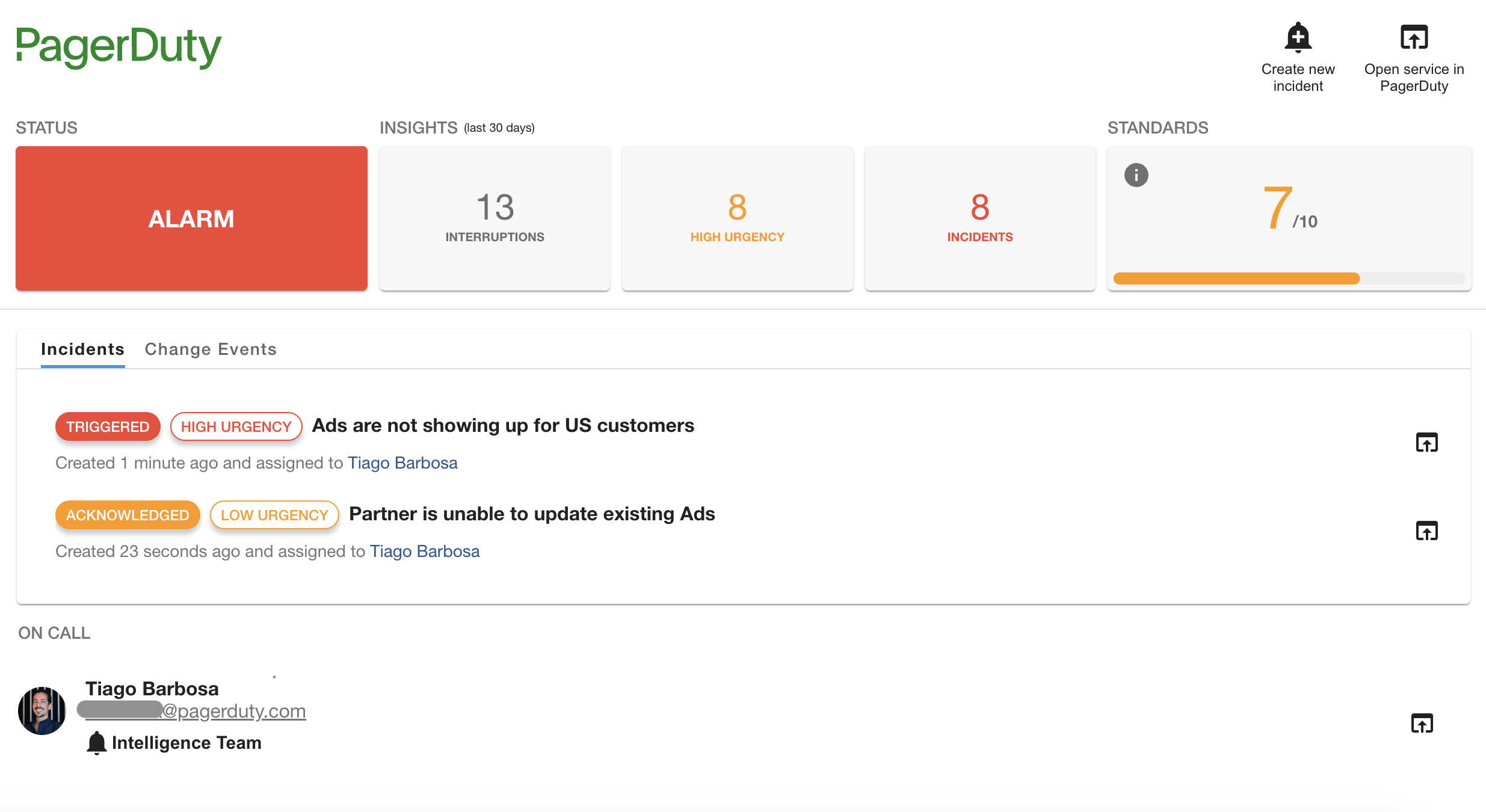 You can also make the card appear conditionally for services (only if PagerDuty is configured for the service) by replacing the card with a switch case, as follows: