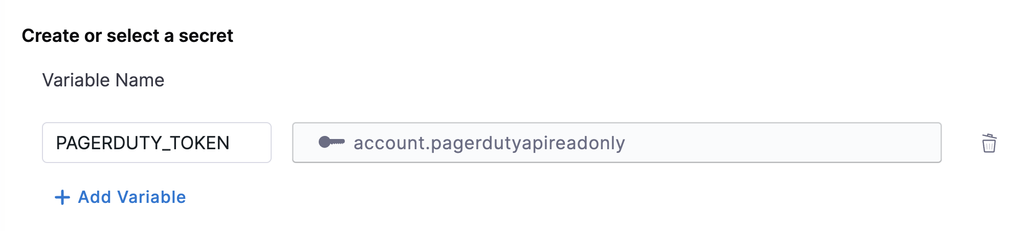 Since the PAGERDUTY_TOKEN variable is used in the application configuration, you must generate a PagerDuty API key and set it as the value of PAGERDUTY_TOKEN. For instructions on how to create a PagerDuty API integration, read the instructions.