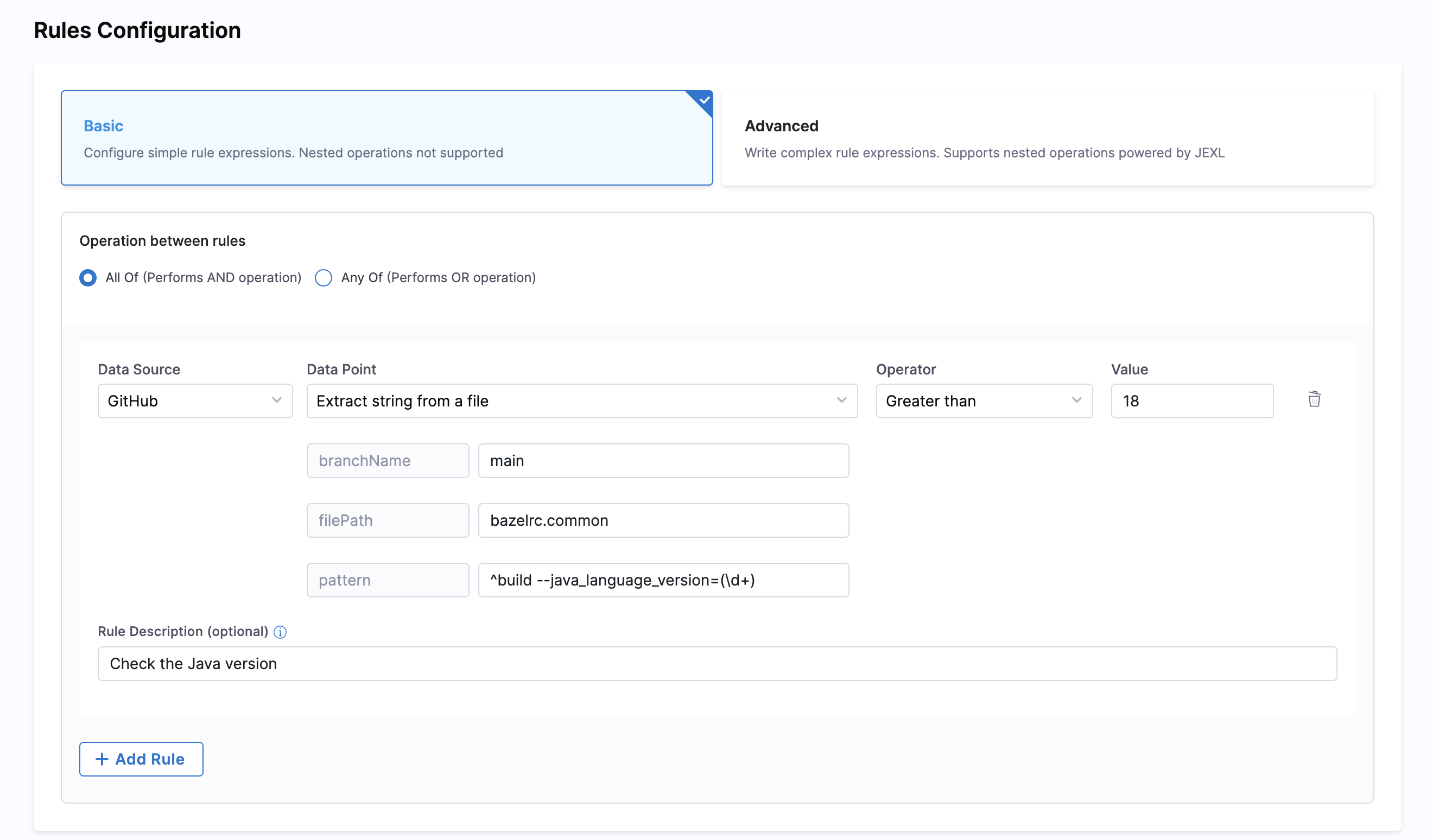 • Description: Describe the scorecard's purpose (e.g., "Track migration to Java 18 across all services").