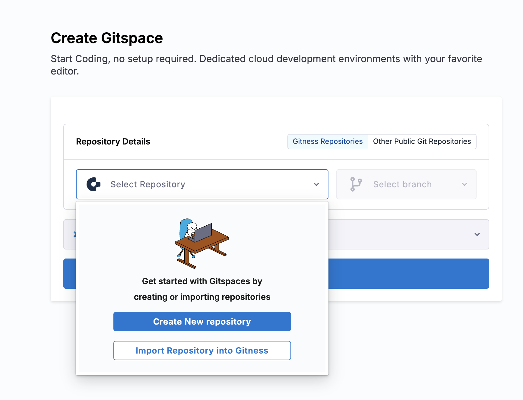 1. If you don’t have a Harness Open Source Repository, you’ll get an option to create one or import a new repository.