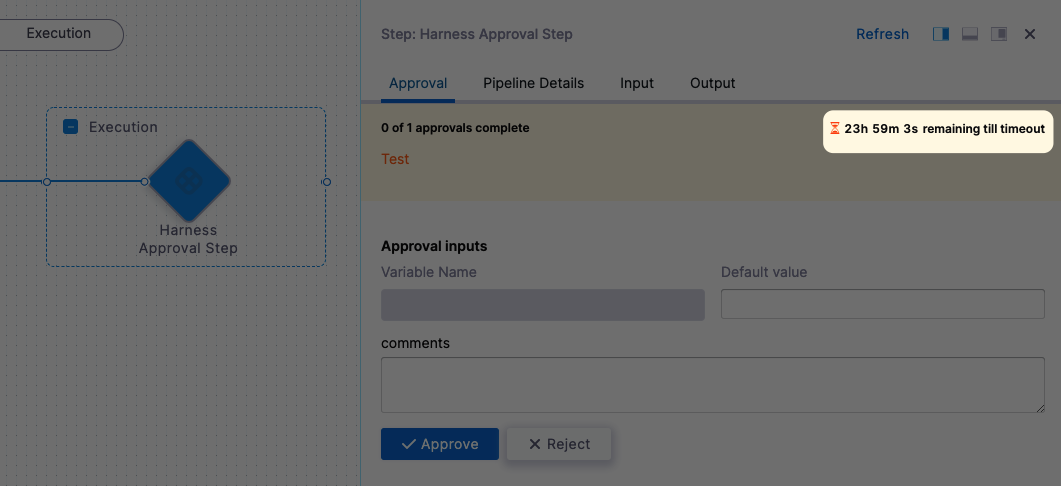<+pipeline.stages.Shell_Script.spec.execution.steps.Harness_Approval_Step.output.approverInputs.foo> == 1