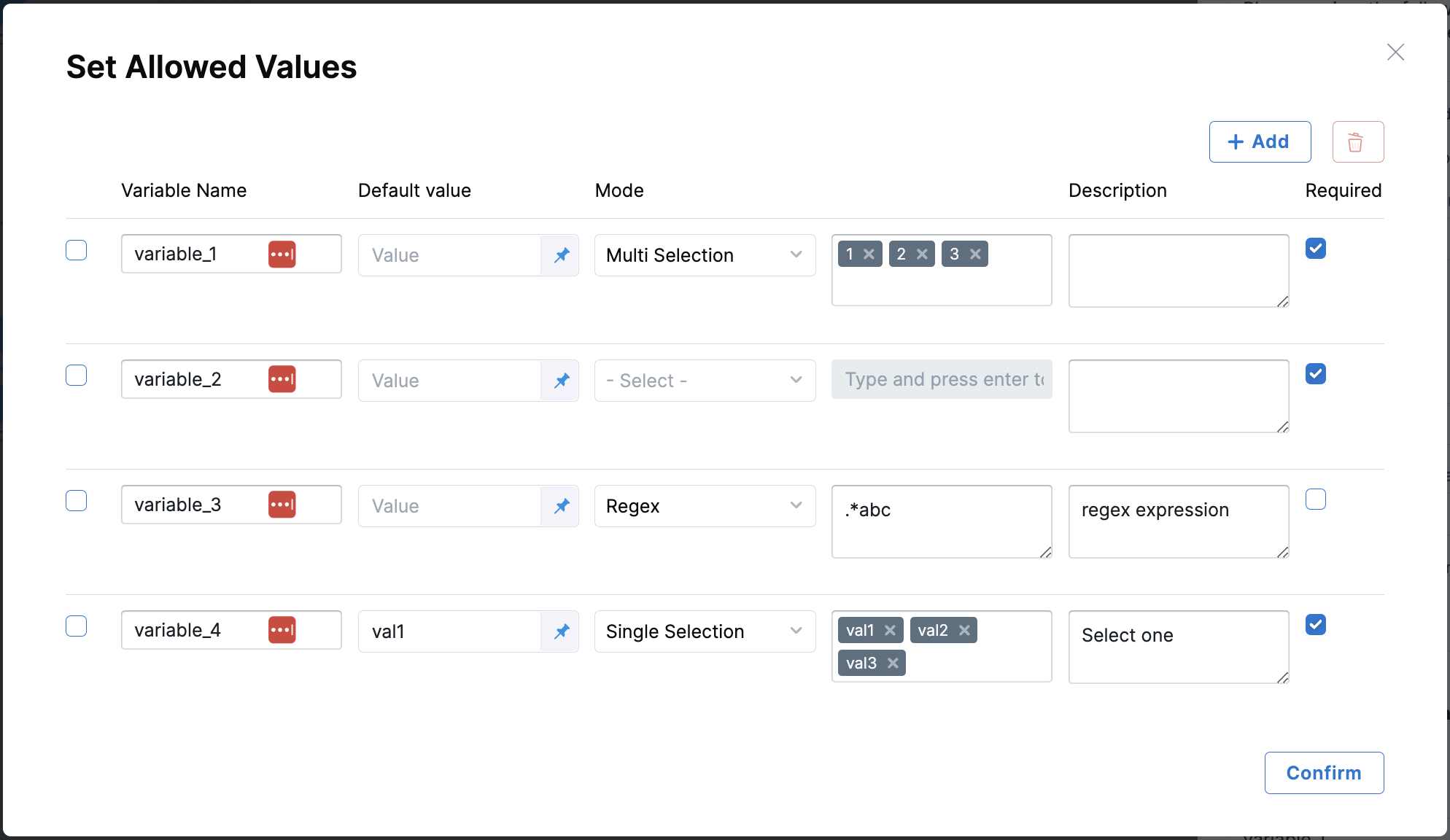 Here's an example YAML file showcasing various configurations you can use for allowed values.