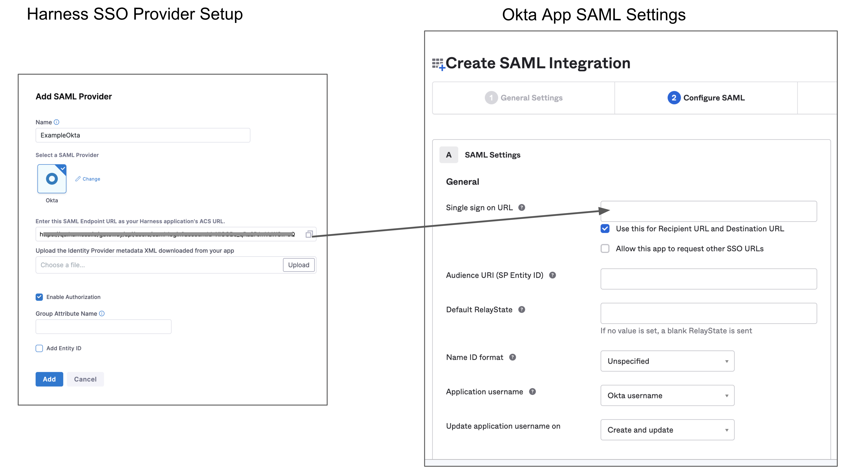 2. Copy the endpoint URL from Enter this SAML Endpoint URL as your Harness application's ACS URL. This is the URL you need to paste in the Single sign on URL field in Okta.