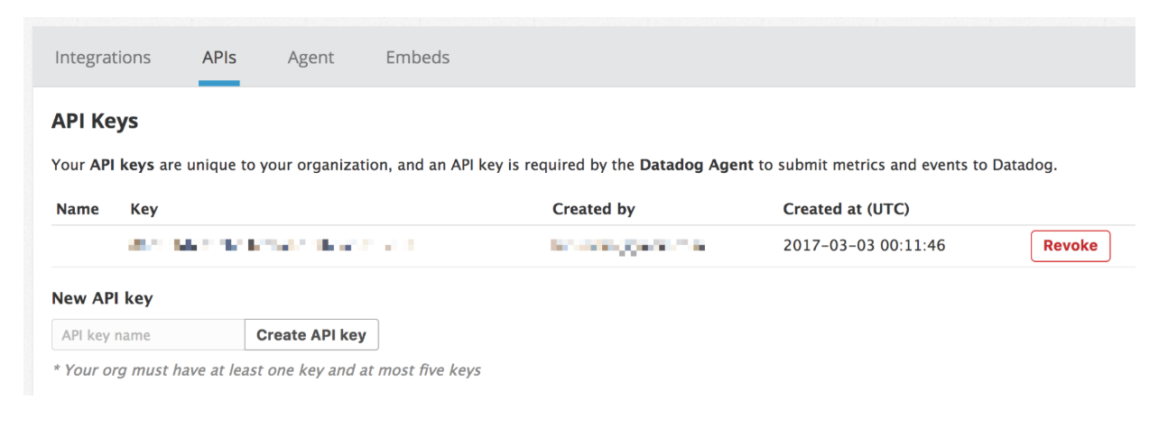 - In Datadog, hover over Integrations, and then click APIs. The APIs page appears.