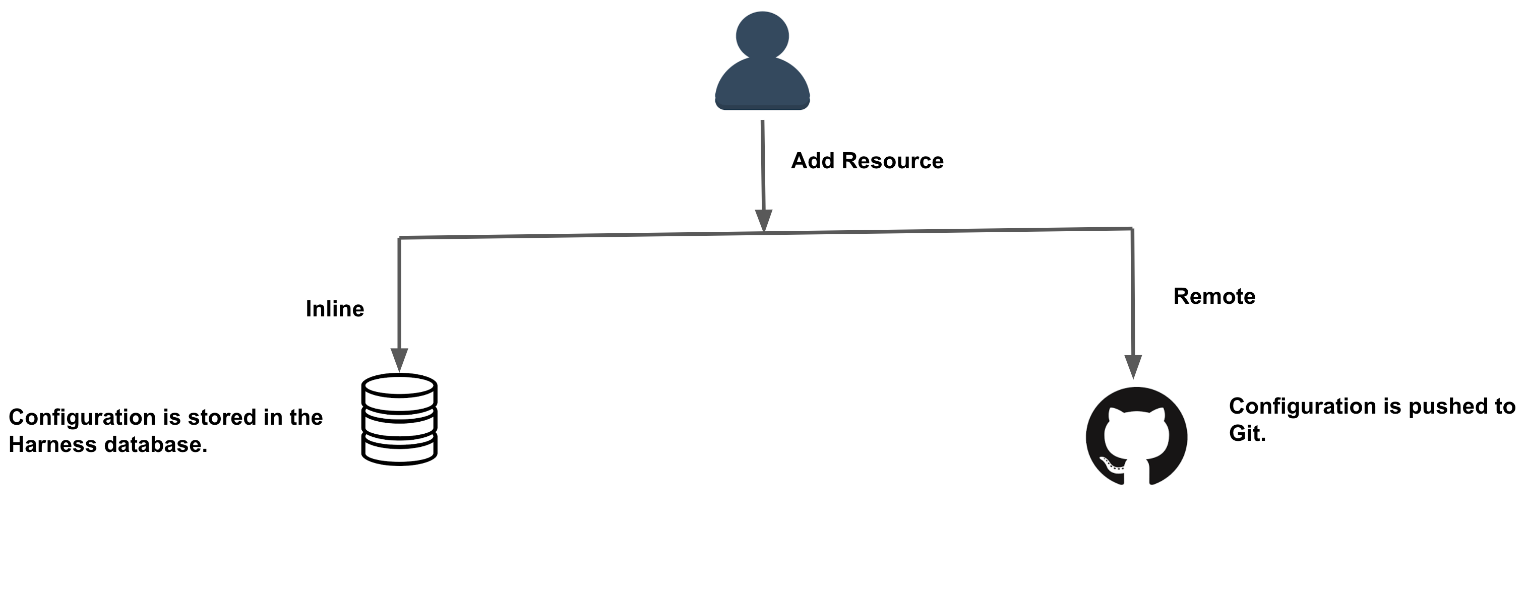 You can also store your configurations in Harness, by selecting the Inline option while creating resources. For more information on creating an inline pipeline, see Pipelines and Stages.