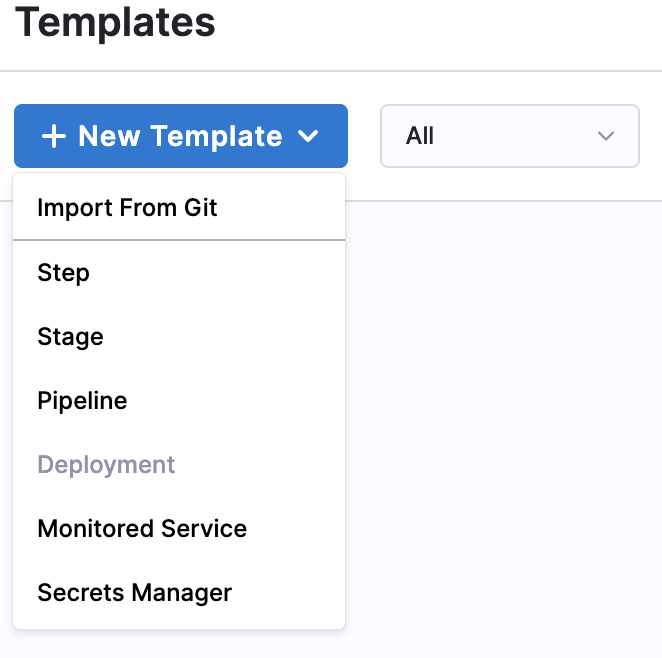 3. Click New Template and then click Import From Git.