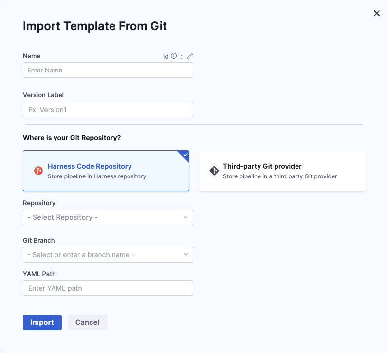 This topic explains how to import a Template from your Git repo to Harness.