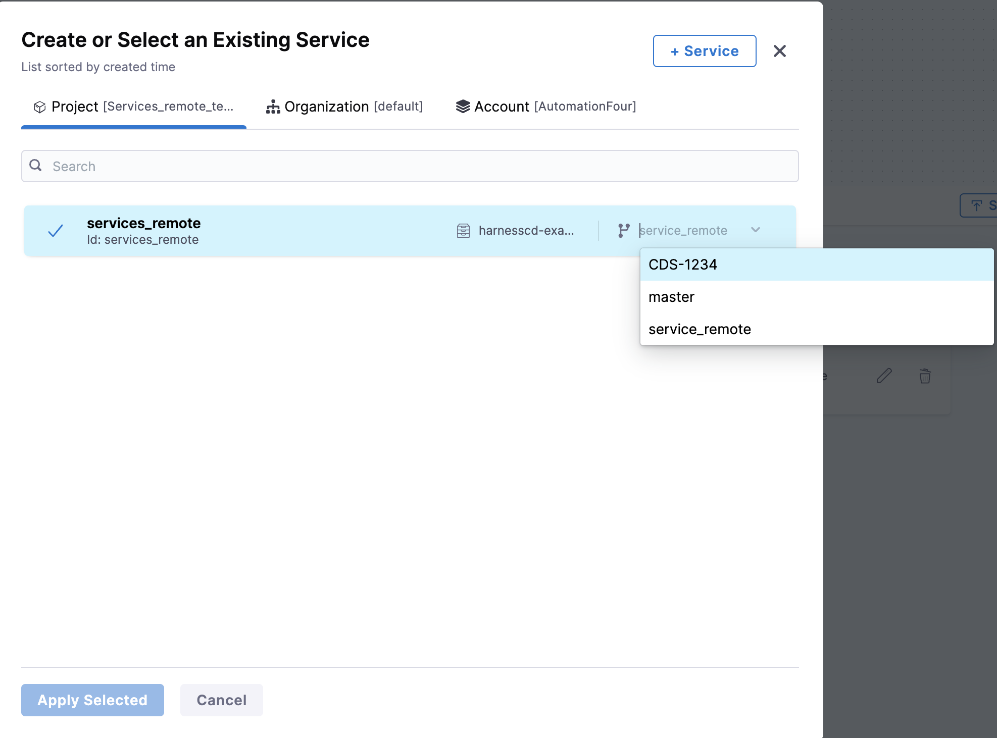 Once the remote Harness service is created, you can use it in your CD pipeline. You can add a remote service to a pipeline regardless of whether the pipeline is inline or remote.