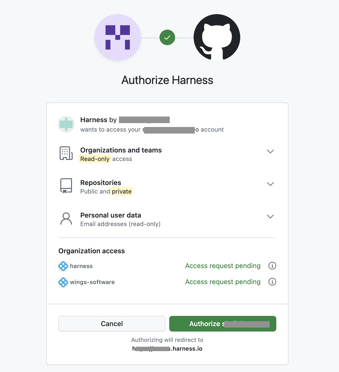 Select Authorize. Harness fetches the corresponding OAuth token associated with the Git provider and displays it under Access token for Git providers.