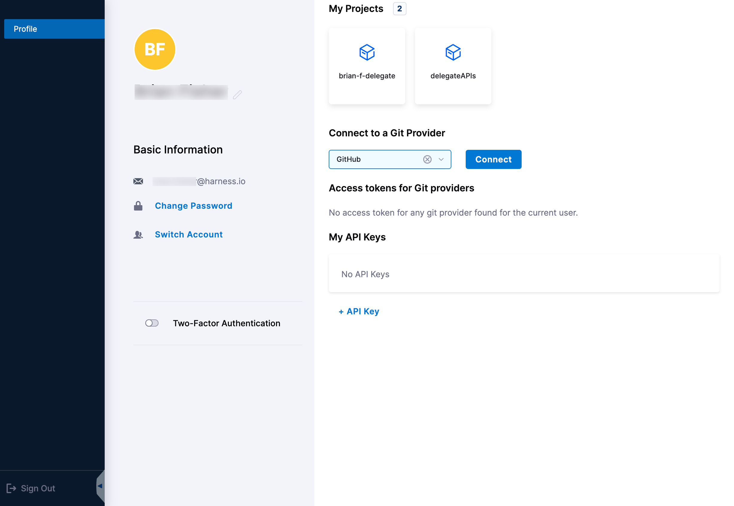 You can push configuration changes using your own credentials by integrating OAuth with Git. When you integrate OAuth with Git Experience, the credentials are stored in your Harness account user profile. These credentials are used for any subsequent commits.