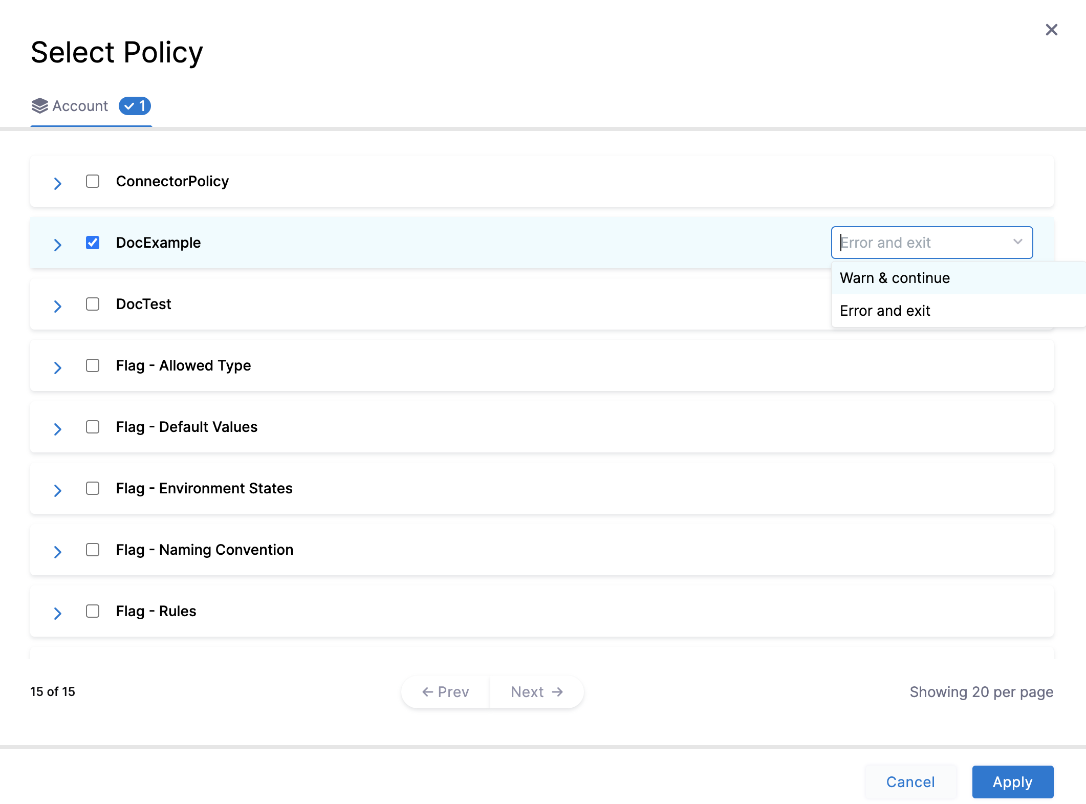 Based on your selection in the Policy Evaluation criteria, you will either receive a warning or an error.