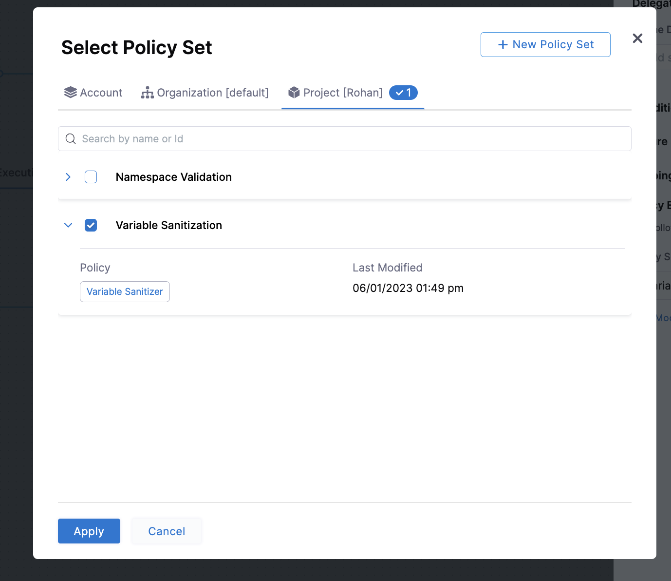 You will be prompted to pick a policy set to associate with the step.