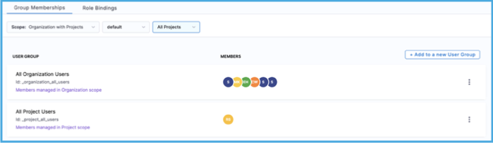 When a new user is added to a project, the user is automatically added to the All Organization Users user group of the parent organization. However, when a user is removed from a project, they are not removed from the All Organization Users user group of the parent organization.