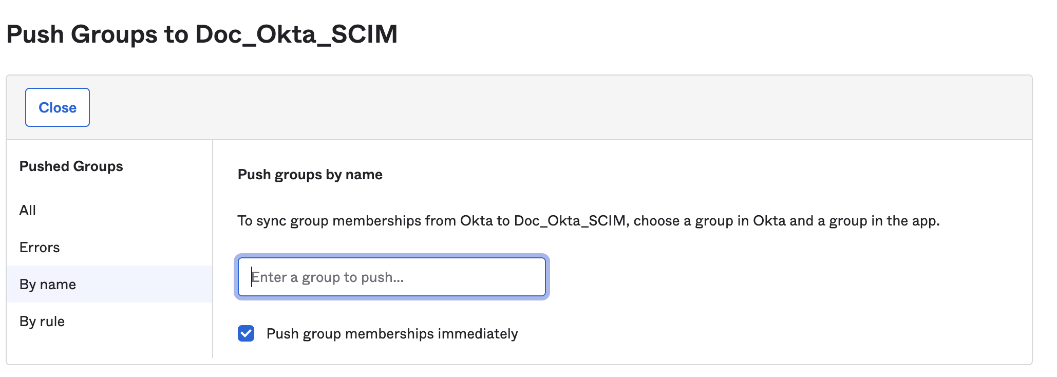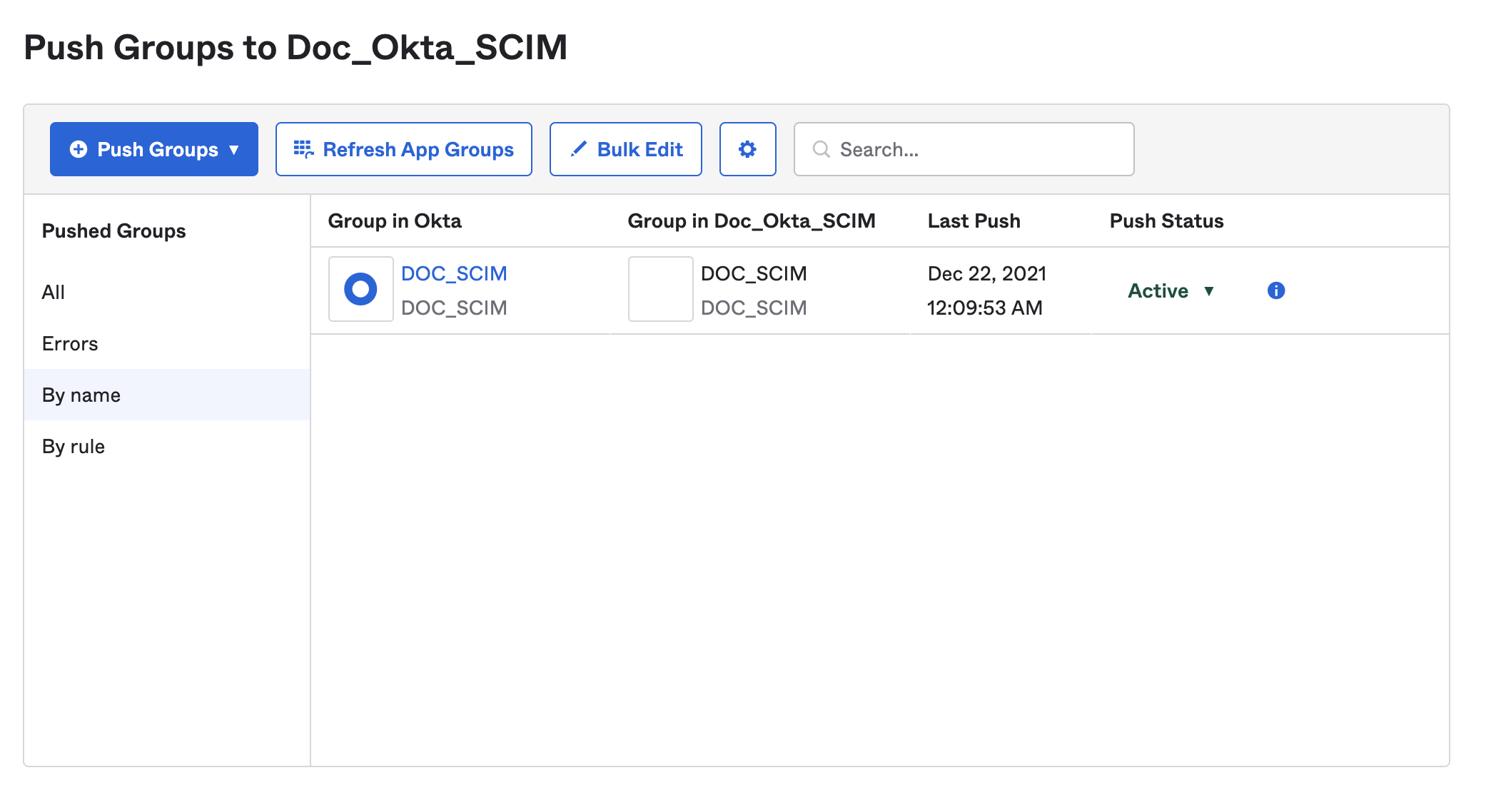 • In your Harness Okta app, select Push Groups.