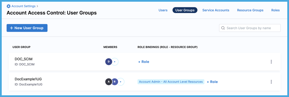 After user groups are provisioned through SCIM, you can manage permissions granted to the users in those groups by assigning roles and resource groups to user groups in Harness.