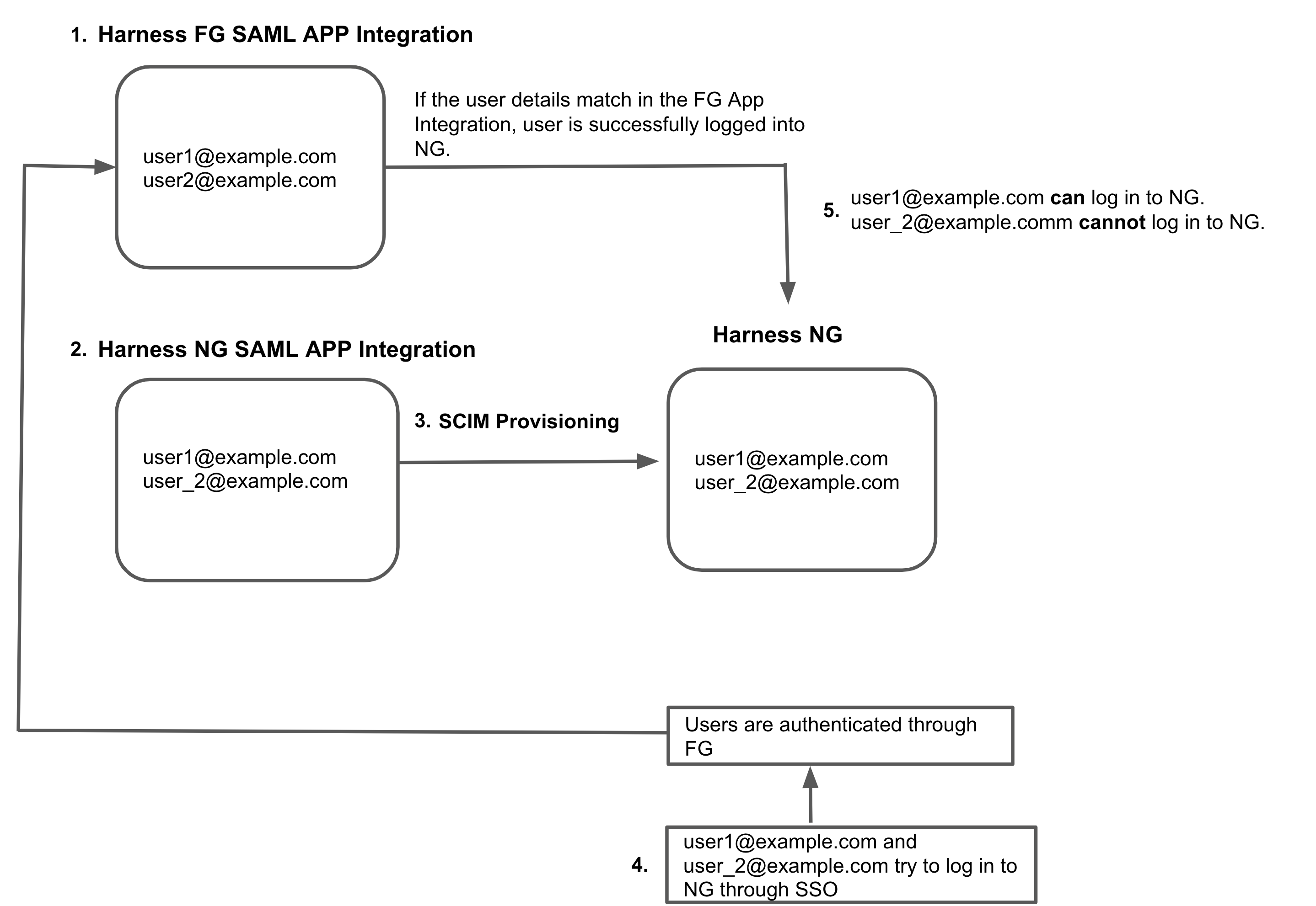 4. user1@example.com and user_2@example.com try to log in to Harness NextGen through SSO.