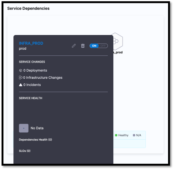 The Service Dependency section graphically displays the dependencies between applications, infrastructure, and data.