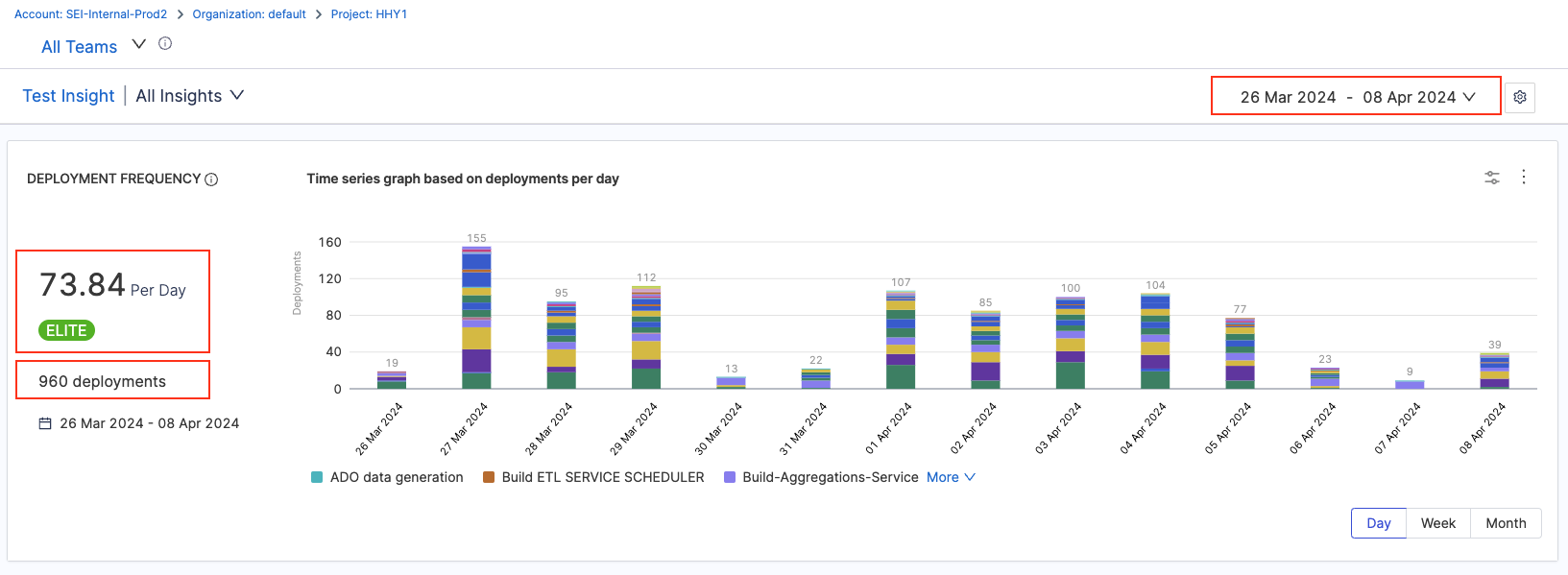 Deployment Frequency = (Total Number of Pipeline Executions) / (Days in the Insight Time Range - 1)