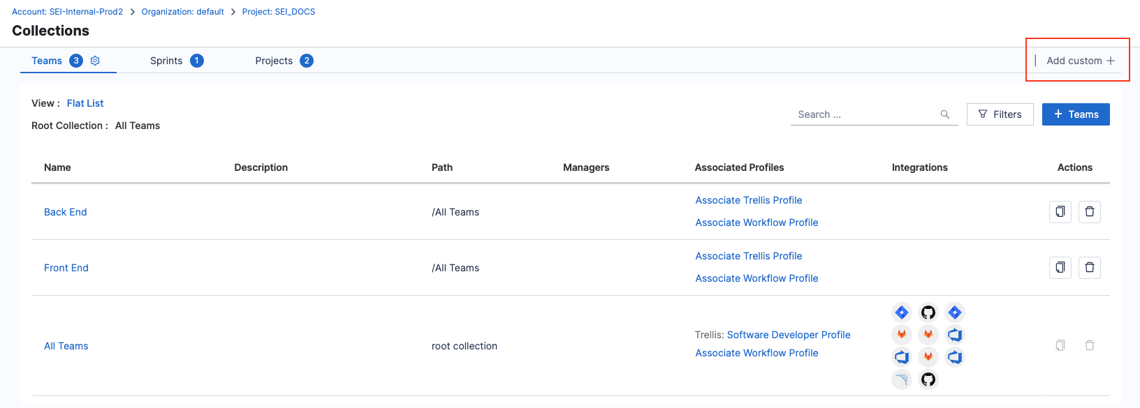 In your Harness project, go to the SEI module, select your Project, and then select Collections.