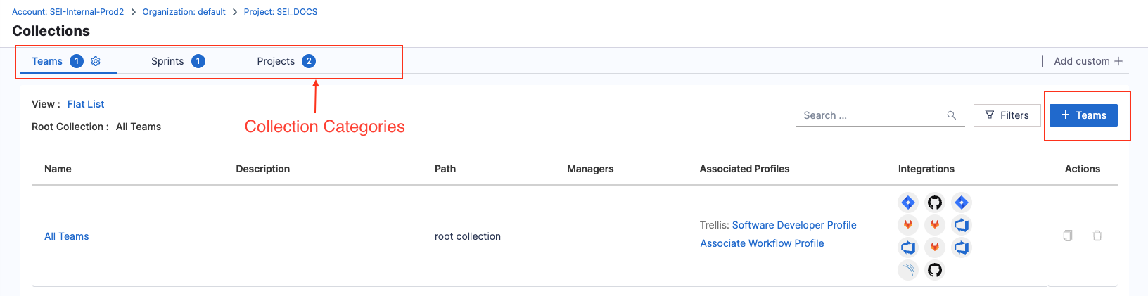 1. In your Harness project, go to the SEI module, select your Project, and then select Collections.