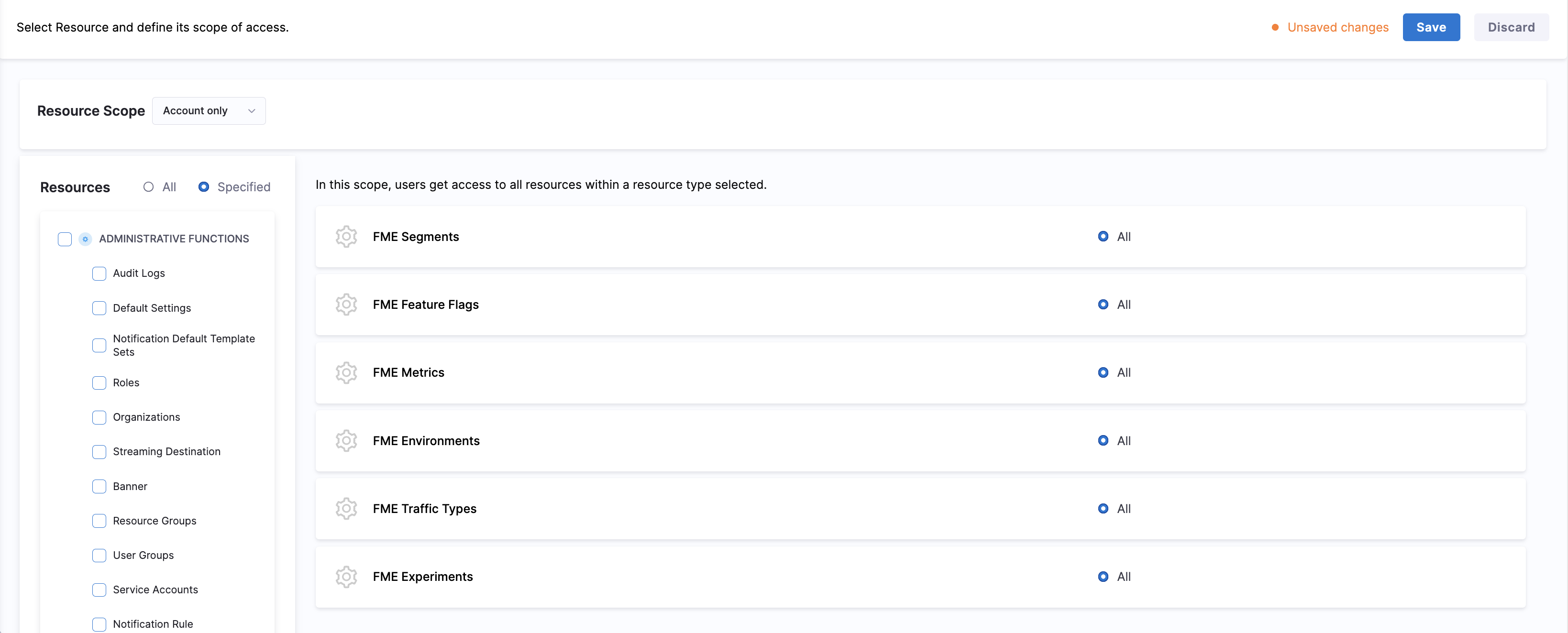 This feature enables Harness FME administrators to use resource groups to control access to FME resources by a specific environment, ensuring precise permissions, safer non-production edits, and auditable governance.